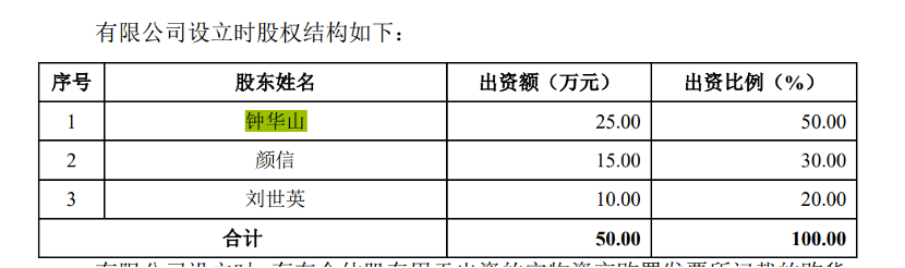为了满足《公司法》(1999年修订)关于有限责任公司股东人数的要求,钟华山创立大昌科技时选择让配偶颜惠莲的母亲刘世英、叔父颜信出面分别代持了20%和30%的股份。一直到2013年11月,才解除了代持关系。