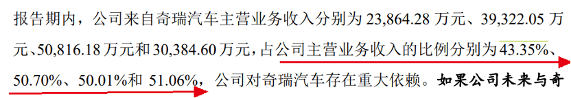 深度绑定奇瑞,业绩在同行中“掉队”