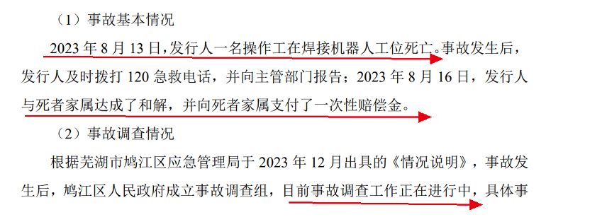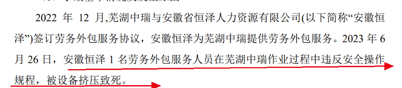 对此,芜湖市鸠江区应急管理局出具《行政处罚决定书》,对芜湖中瑞罚款32万元,对马承军等3名主要管理人员进行了罚款处罚,对芜湖中瑞的劳务外包公司安徽恒泽罚款35万元。