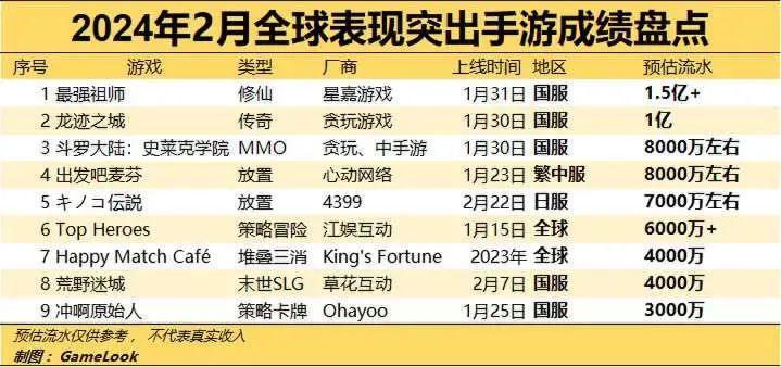今年2月8号,湖南草花互动发行、北京智明星通研发的末日生存SLG手游《荒野迷城》上线。根据GameLook的报道,该游戏2月预估收入超4000万元,成为2月表现前十的新产品之一。