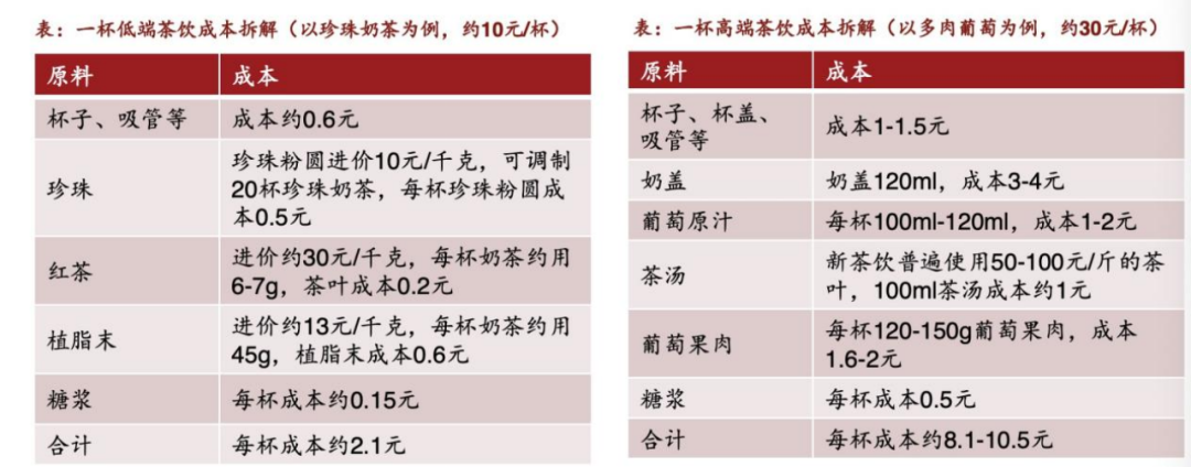 奶茶的成本拆解(图源:招商证券发布的佳禾食品研报)