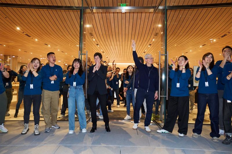 苹果CEO蒂姆·库克现身为Apple静安店揭幕 图片来源:Apple