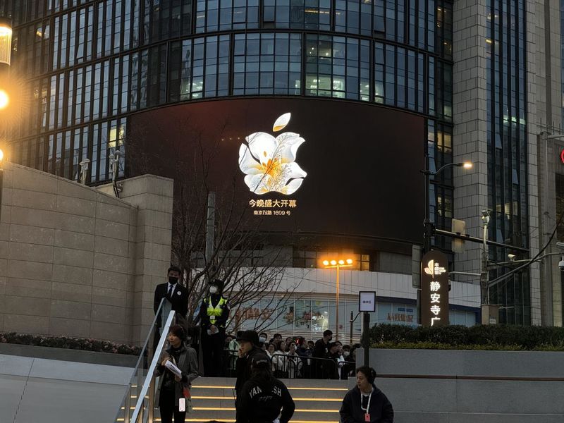 为了给新店造势,苹果用上海市市花白玉兰设计了宣传海报;苹果CEO蒂姆·库克也提前一天到达上海,和演员郑恺来了一次“偶遇”;最后库克亲自到场为门店揭幕。