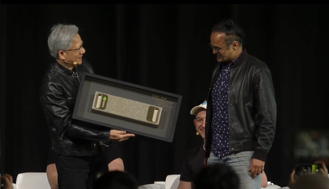 黄仁勋(左)与Ashish Vaswani(右),图片来源:英伟达GTC