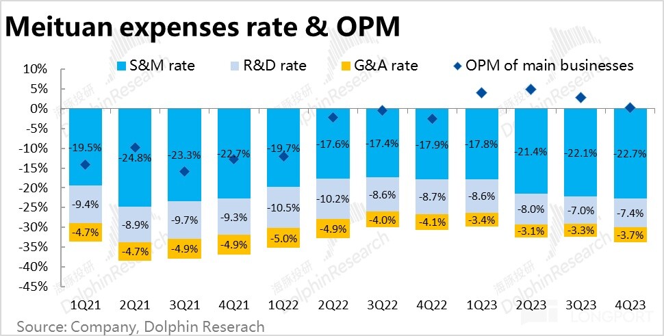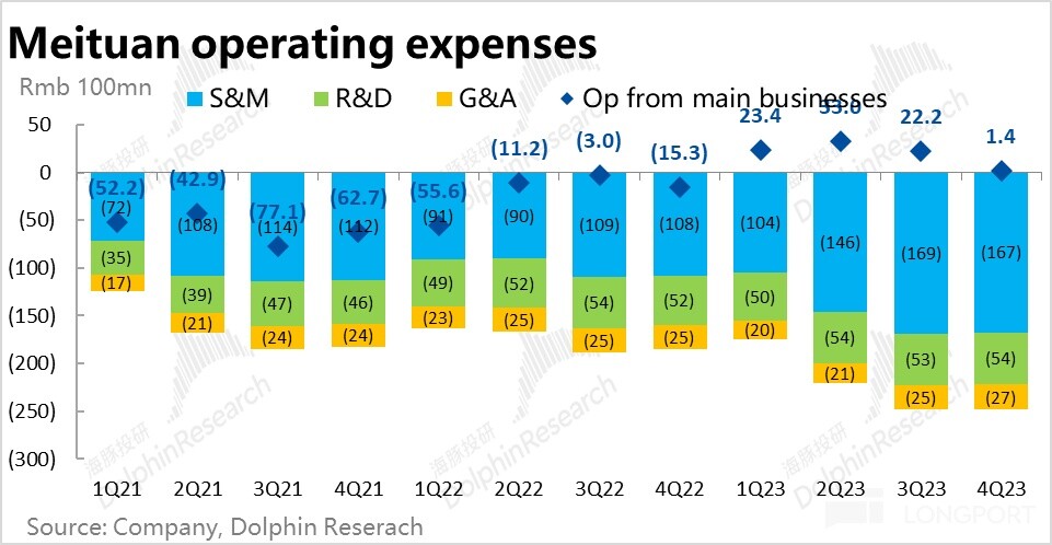 但从另一角度,费用继续增长和公司实际整体经营利润并不好看的事实,也表明公司仍处在竞争比较激烈的市场环境下。而后续外卖中枢增速到底几何,宣称要大幅减亏的新业务能不能实际交付;在抖音之外小红书、快手等其他流量入口同样要入局到店业务的情况下,中期竞争格局也并非真正稳固了。