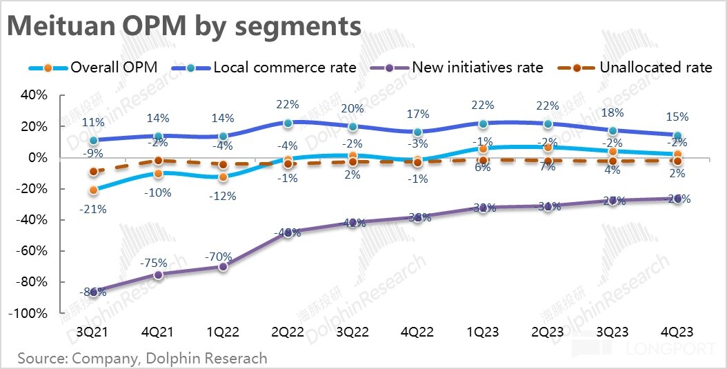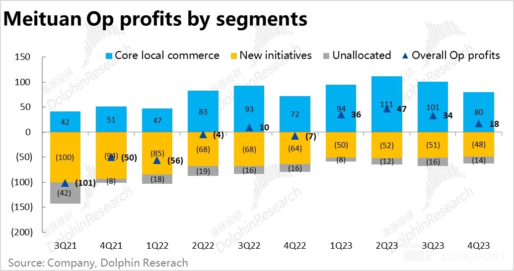 3)四季度新业务亏损比预期少 3 亿,且公司官宣新业务 24 年以减亏为首要任务,同样是缓解了市场对美团新业务持续大幅亏损的担忧。