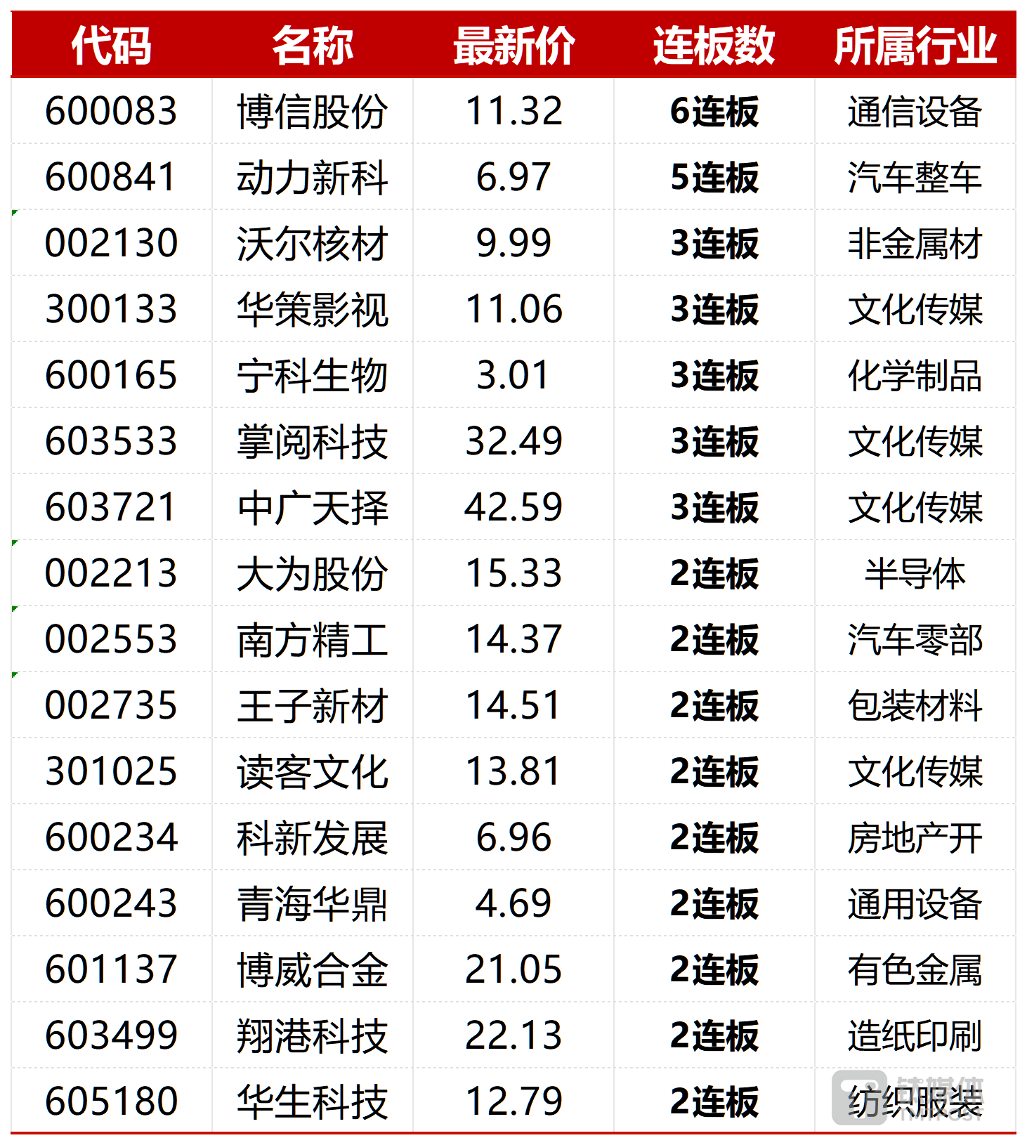 相关个股:掌阅科技、华策影视、深信服、九安医疗、亚康股份、润泽科技