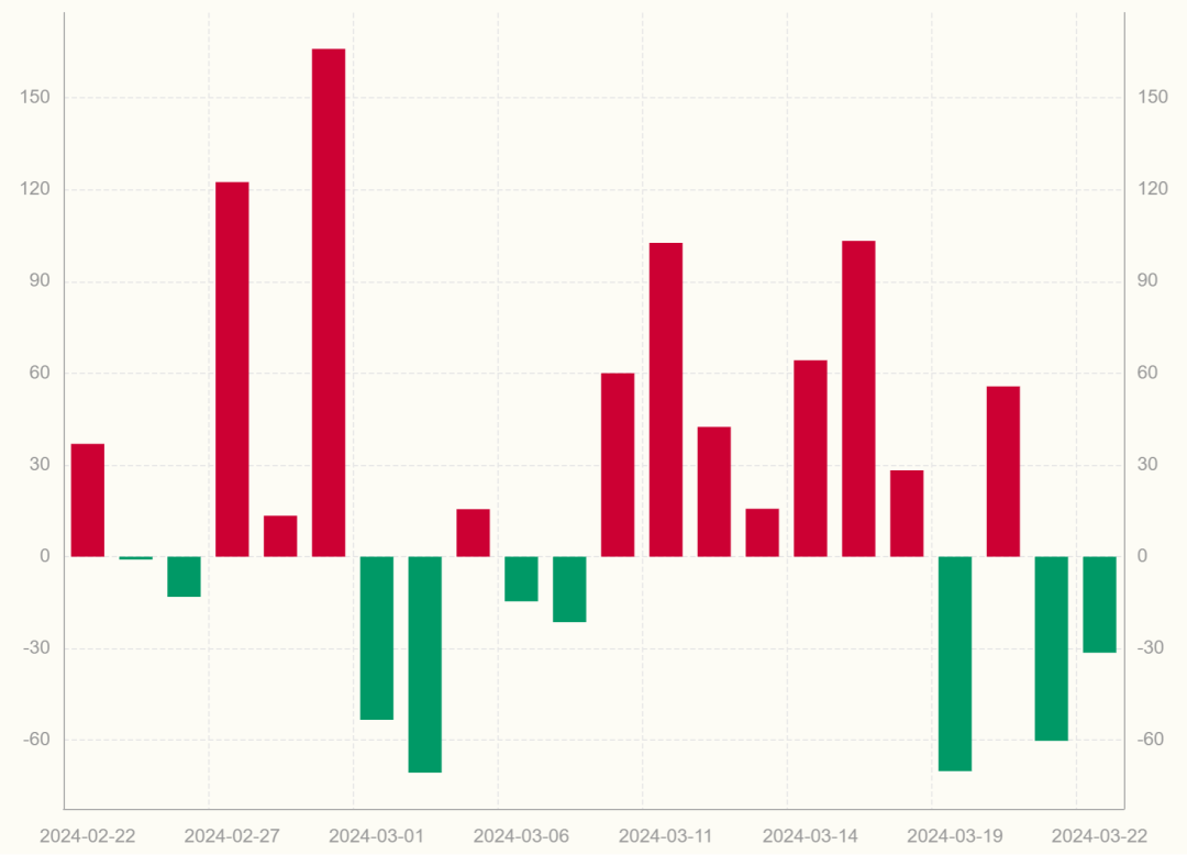 图:近一月北向资金净流入情况 数据来源:Wind数据
