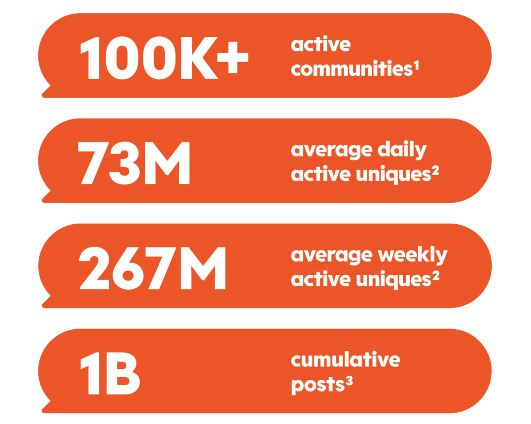 鲜有人知的是,目前 Reddit 是美国第五大网站,流量仅次于 Google、YouTube、Facebook 以及 Amazon。招股书里显示,Reddit 有 3.3 亿月活跃用户,7310 万日活跃用户,10 万个活跃子社区。