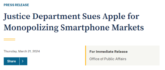 梅里克·加兰表示,“我们指控苹果巩固了其垄断权利,不是通过让自己的产品变得更好,而是通过让其他产品变得更糟”,并指出消费者不应该因为公司违法而支付更高的价格。