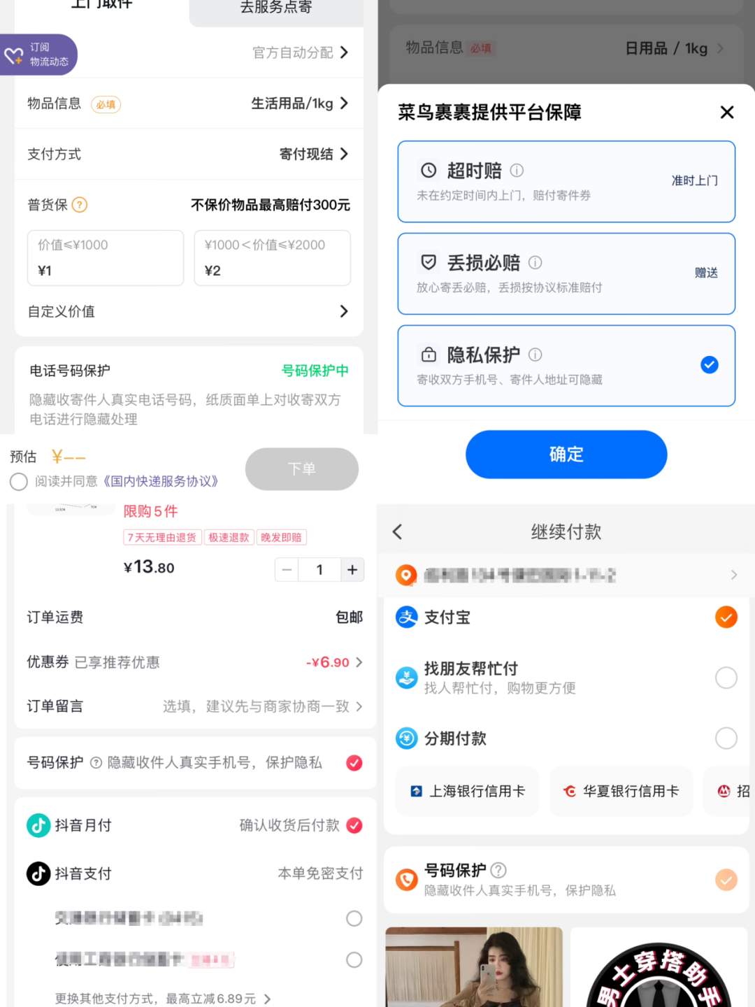 一方面,新国标未强制要求商家、快递企业等使用隐私面单,且快递企业和商家提供的加密服务缺乏统一标准,如有些快递企业有默认号码保护功能,有些快递企业将该功能放在二三级页面,甚至还有些快递企业干脆不提供相关功能,这些都会导致用户容易漏选或者忽视该项服务。