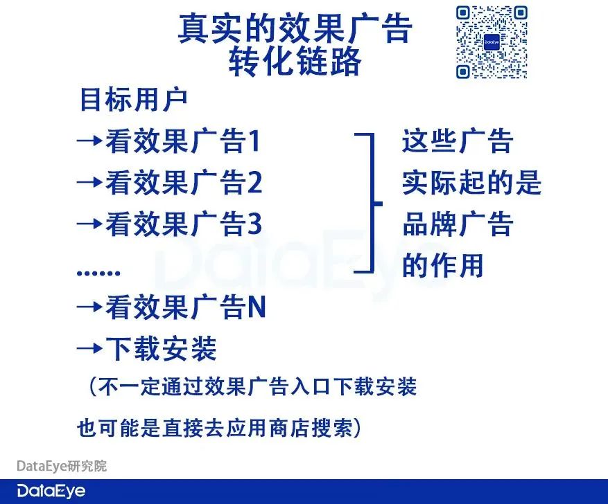 在“新链路”的情况下,大多数玩家产生下载安装的动机,是看了多个内容,而不是只看完一个。这意味着,在最后一个效果广告之前,效果广告1、2、3...的作用,是铺垫,是让用户记得游戏——本质是品牌广告。即使是效果广告,也是连续性、系统性才能产生效果,大多数的效果广告都是铺垫,都是为了最后那一次下载安装转化而服务。如果仅仅通过吸不吸量的视角(数据)去衡量单个效果广告,可能会陷入盲目追求爆款的素材中去,反而会让数据成为营销的桎梏。基于此,我们建议: