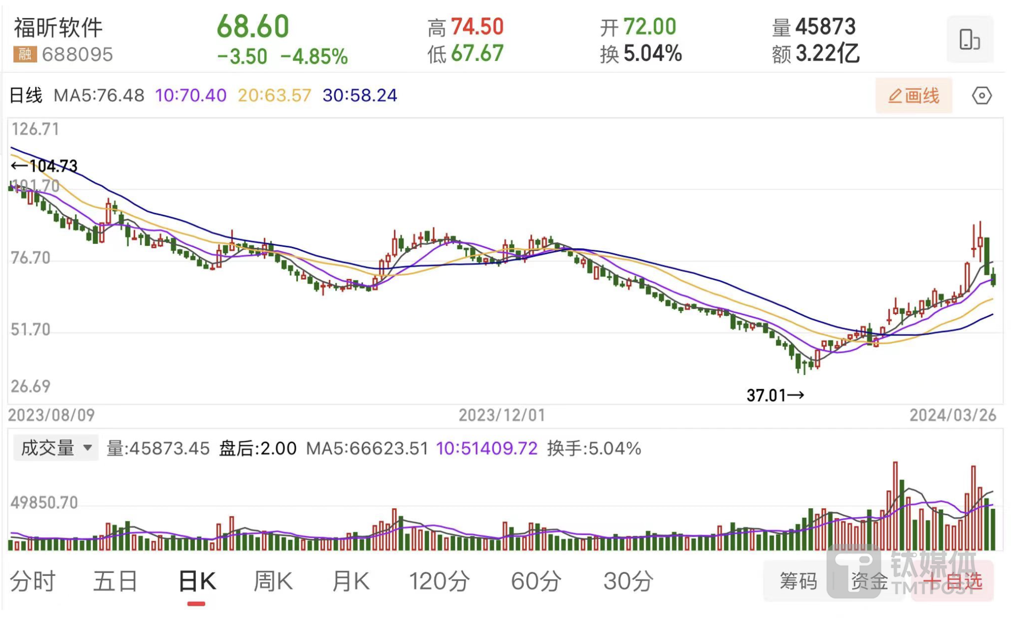 继公司发布对外投资公告后,公司股价已连续两个交易日出现下滑。截至3月26日收盘,公司股价报收68.6元,跌幅4.85%,公司当前总市值为62.76亿元。