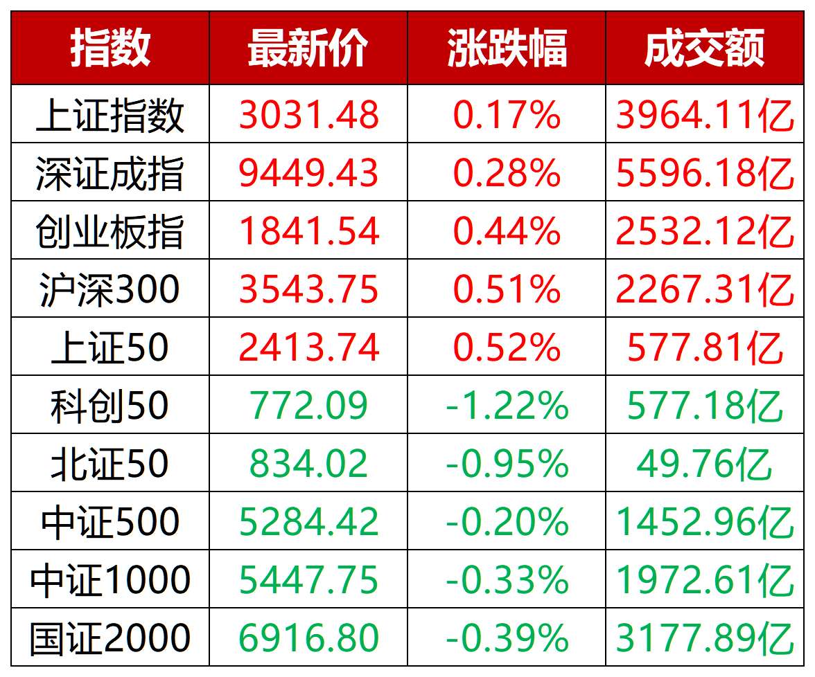 今日大盘股和中小盘股行情分化加大,三大指数飘红,沪深300指数上涨0.51%,上证50指数上涨0.52%,国证2000、中证1000等中小题材继续走弱。