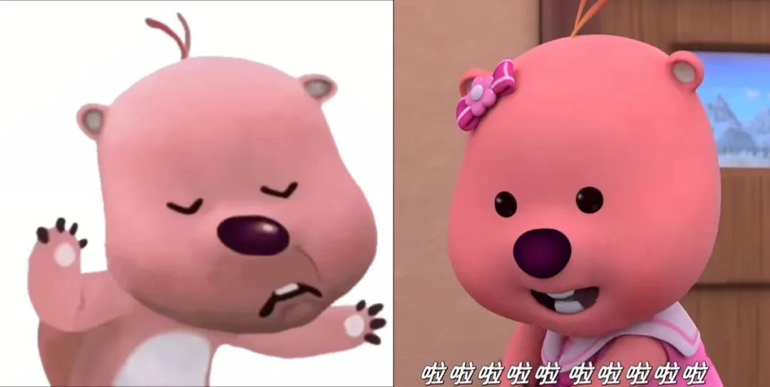 以阴阳怪气和女明星形象走红的Loopy,在动画《小企鹅Pororo》中,所展示出的形象也和大部分儿童动画配角差距不大———娇弱、倒霉、善良。