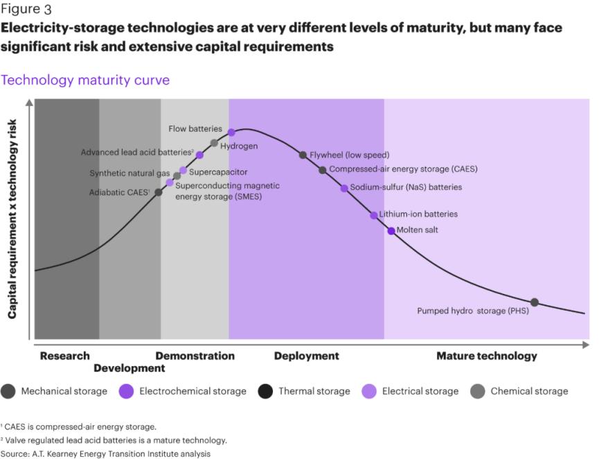 主要储能技术成熟度分析,图片来源:A.T Kearney Energy Transition Institute Analysis