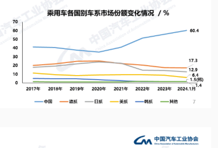 比亚迪发起这次价格战核心原因,总结起来就是利用购置税减免的时间窗口,一波清掉燃油车。从2024到2027年这四年,新能源购置税是两免两减半。按照汽车工业协会的数据,乘用车一年2500万的量,自主品牌居然只占到60%,汽车强国德国日韩,基本上都是至少80%起。