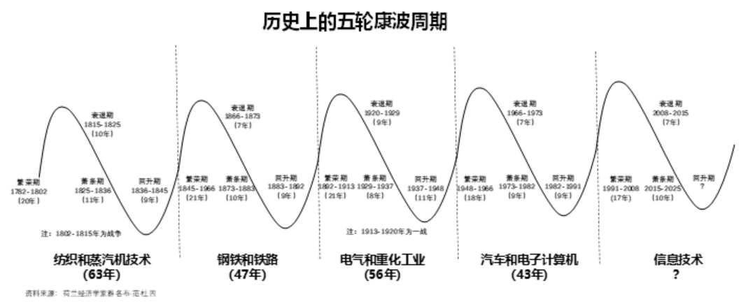 我们已经经历过四轮康波周期,现在是第五波。