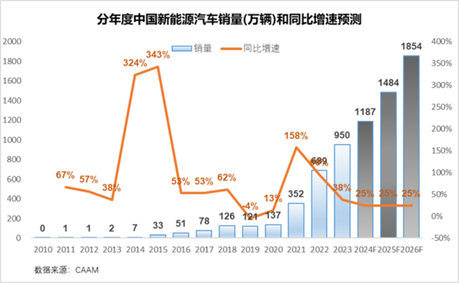 从销量的角度看,未来3年,中国新能源汽车市场的销量每年保持25%的增速问题不大。但是海外市场,想达到这个增速,难度很大。
