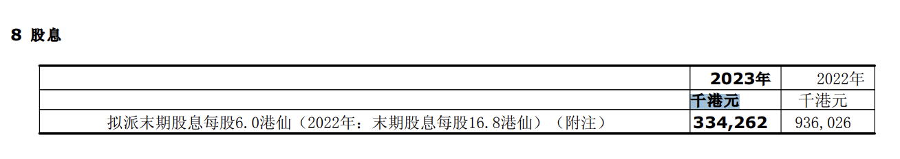 2020年至2022年,公司分红金额为3.97亿港元、7.74亿港元、9.36亿港元。至今公司累计分红金额高达24.41亿港元。