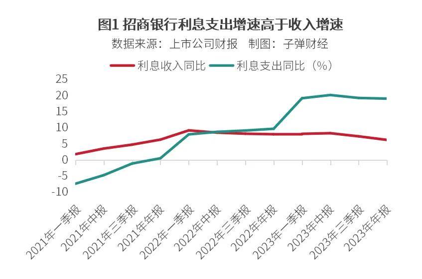 “零售之王”招商银行既需要支付高昂的利息费用,也面临存款成本走高的压力。8万亿元存款背后,2023年,招商银行对应的客户存款利息支出达到1288.09亿元。计算同比增速可发现,在存款增加了8.22%的情况下,客户存款利息支出同比增长了21.71%,总的利息支出的同比增长达19.09%。