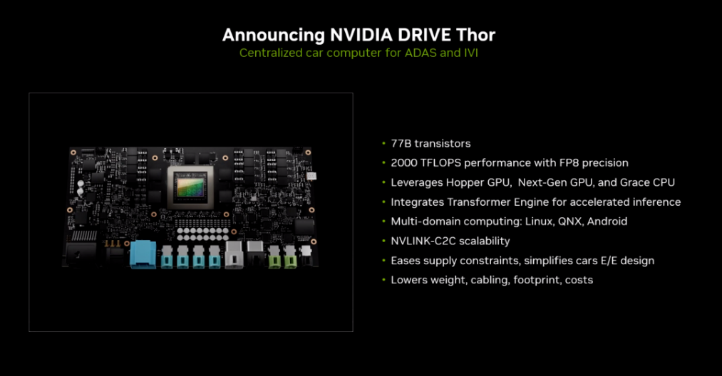 而英伟达AV2.0的核心技术优势,在于拥有Drive Thor(雷神)芯片。在智能驾驶方面,Thor发挥的长处是“低精度运算”,这意味着可以输入模糊的、多模态的、不确定的数据,通过AI自动生成能力还原出有逻辑的远算方式。