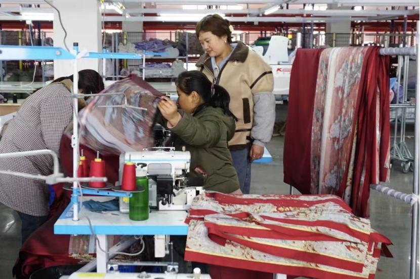 曹县的马面裙制作商家正在搬运面料 图源:霞光社一线探访