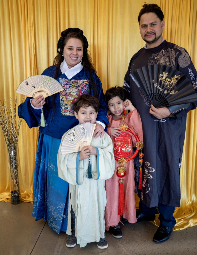 恰逢春节的余庆,前来排队试穿汉服的纽约客们,往往以家庭为单位出行,一家老老小小都有序地等候试穿这些带有强烈中国色彩的传统服饰。
