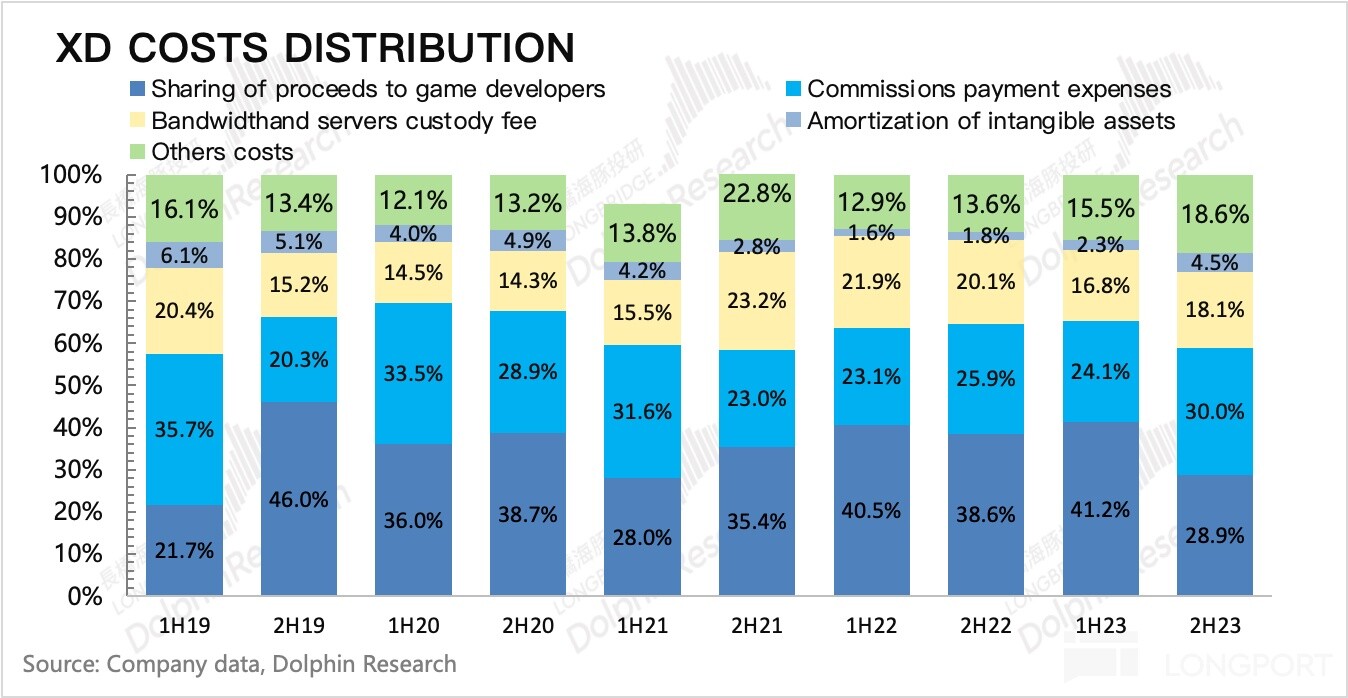 当然公司近一年本身也在积极做降本,从成本拆分的细项来看,游戏开发分成、带宽托管费以及渠道佣金的绝对值都在同比下降。