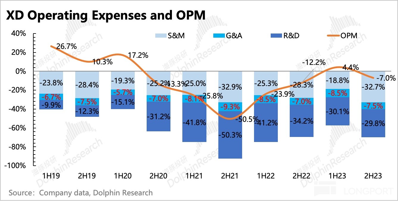 而销售费用在上半年刻意控制后,下半年因为上线了三款自研新游,不减反增 3%。