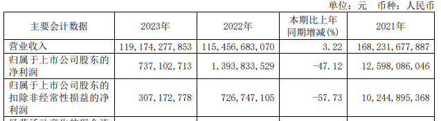 2023年增收降利,大额减值蚕食利润