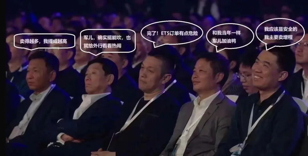 有趣的是,小米汽车的整场发布会,前述几位车圈大佬多次“刷脸”。雷军公布小米汽车SU7定价后,镜头也给到了几位车圈大佬。看着小米汽车终于出炉的价格,几位车圈大佬们的表情耐人寻味。