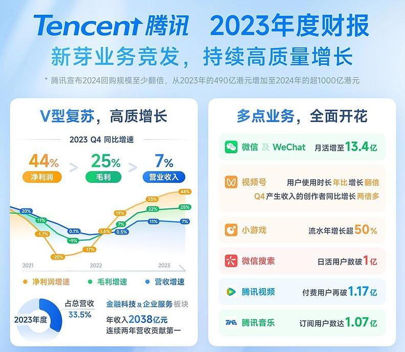 以微信为例,根据腾讯在2023年的全年财报中披露的运营数据显示,微信及WeChat的合并月活跃账户数达到了13.43亿,这反映了这两个平台在全球范围内的强大影响力。与上一年相比,微信的月活跃账户数增长了2%,用户基数的持续增长,不仅代表了微信在社交领域的领军地位,也为腾讯带来了庞大的潜在消费者群体。