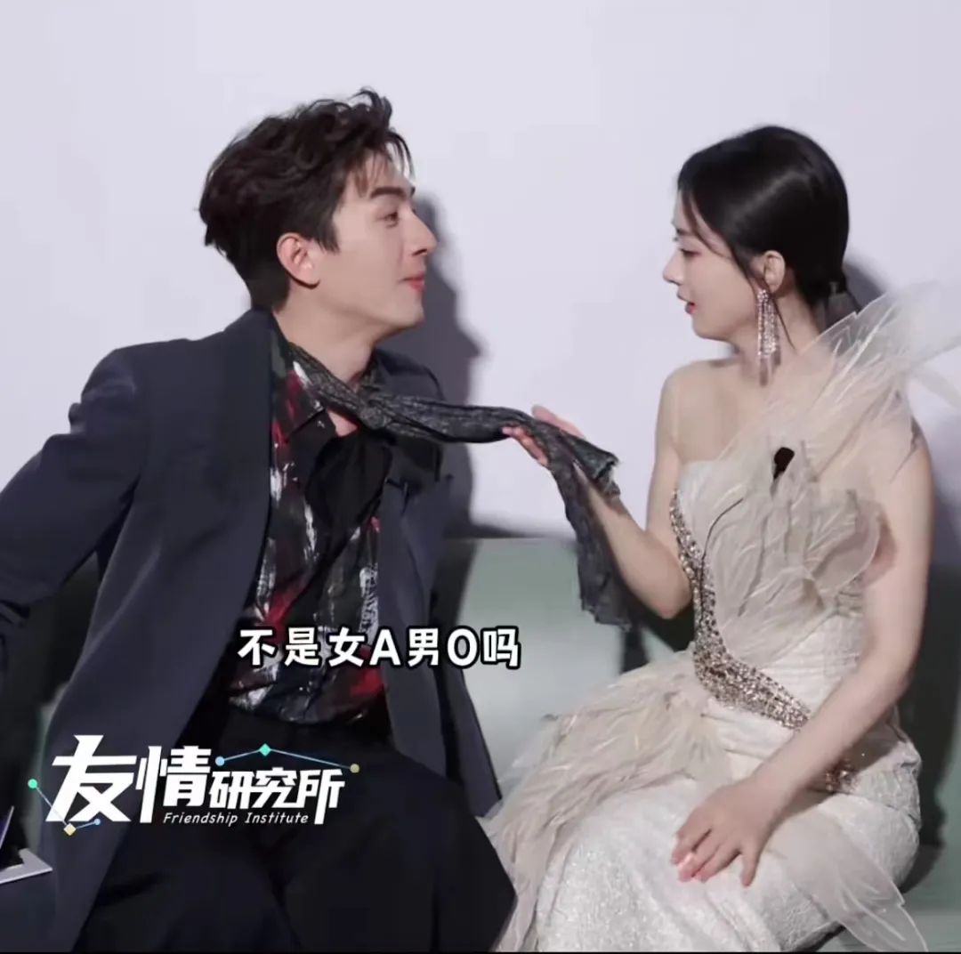 沈璃水中捞行止“美救英雄”,行止给沈璃缝补衣服、做饭,还对着沈璃美滋滋地来上一句“你阳我阴,相处愉快”,剧外也同样安排了赵丽颖扯林更新领带的互动环节,将“女A男O”一走到底。