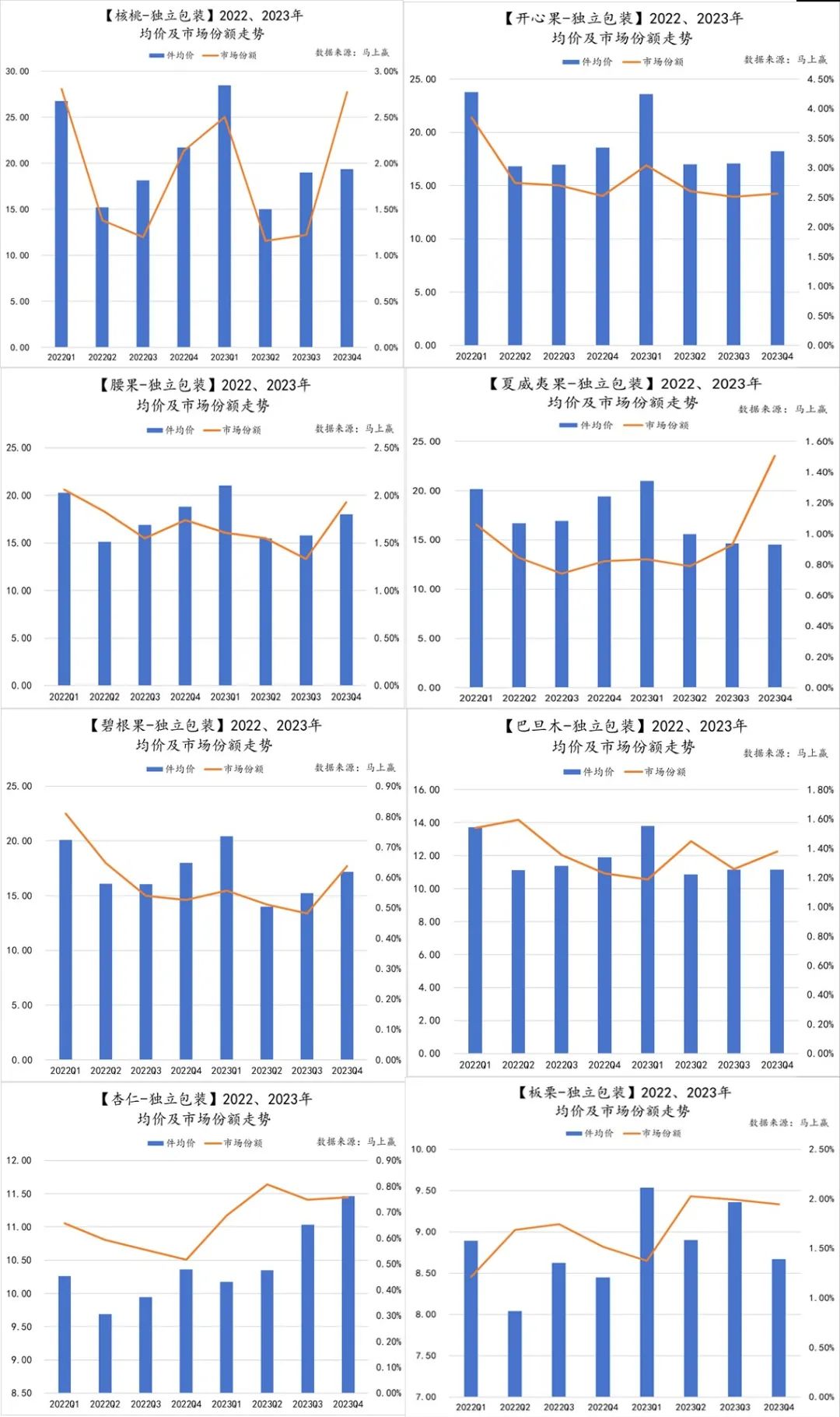 树坚果类均价及市场份额变动情况