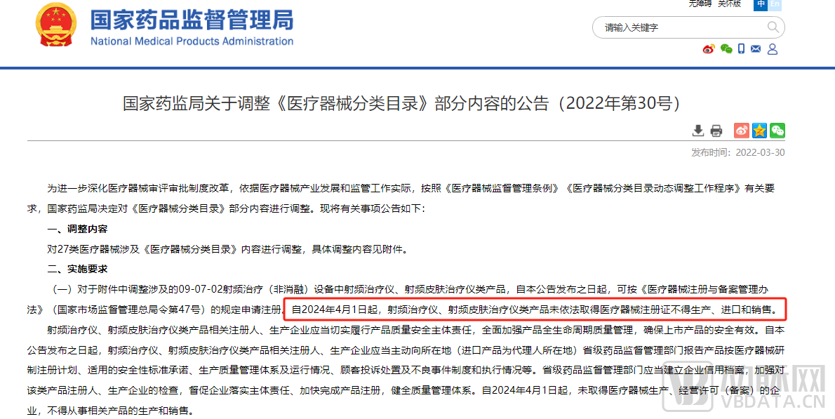 因此,2022年3月,在广泛征求行业意见后,国家药监局决定将射频类美容仪纳入三类医疗器械监管。作为最严格监管程序,三类医疗器械监管要求相关产品需证明其安全性和有效性后,拿到注册证后才能生产、销售。