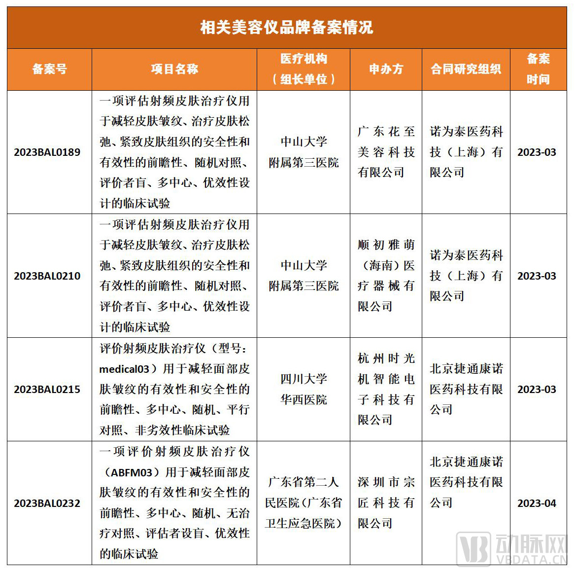 时间成本端,动脉网了解到,自2023年起,仅有花至、雅萌、OGP、觅光等几个品牌申报了评估射频皮肤治疗仪安全性和有效性的临床试验,且到新规正式施行的今日,未有任何品牌的产品获批。