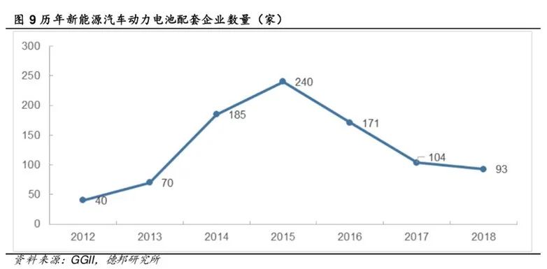 一方面,行业得到补贴滋养,出货量大幅提升,行业内公司数量也快速攀升。另一方面,电池行业整体实力仍然薄弱,多数是从消费电子电池向汽车转型,可靠性低、良品率也只有60%左右,远低于海外的90%,其中更有不少浑水摸鱼的公司趁机行骗补之事。