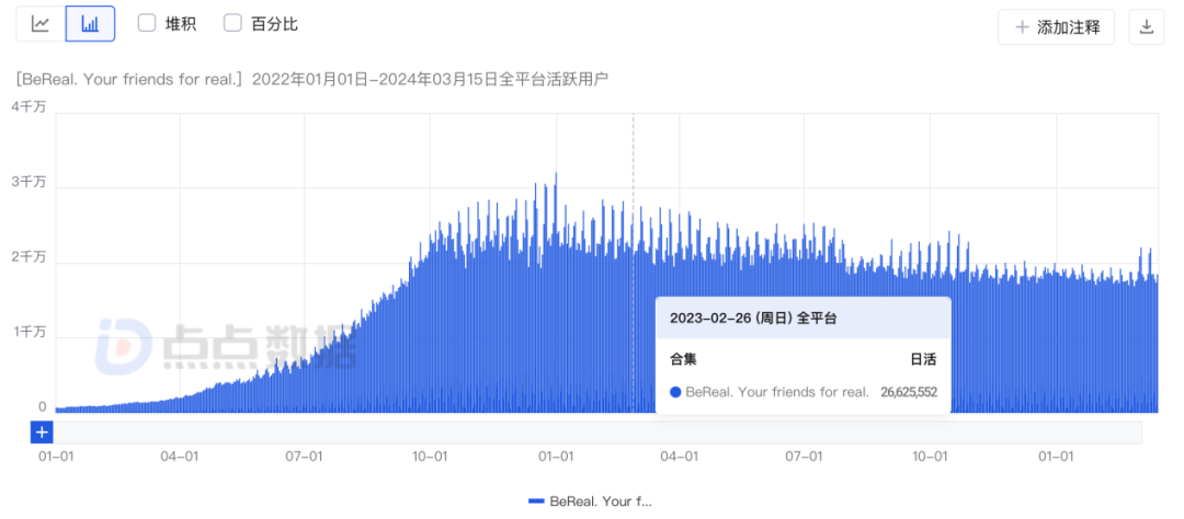 BeReal 全球日活用户数变化情况|来源:点点数据