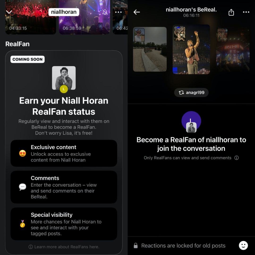 但是,近日,BeReal 又预告了一个新功能,RealFan Status。虽然还没有推出,但大概也能猜出,BeReal 也有可能想借助 RealPeople 和 RealBrands 通过创作者独家内容,来进行订阅变现。只不过,还是同样的矛盾点,BeReal 的忠实用户是否希望一个熟人&半熟人社交 App 中多一些明星呢?