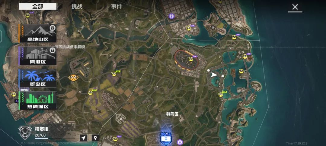 比赛玩法分为竞速赛和热力追踪。首先聊聊竞速赛,《极品飞车:集结》根据不同排位等级将地图划分为不同区域,解锁相应区域后,玩家便可前往集会点参加比赛。