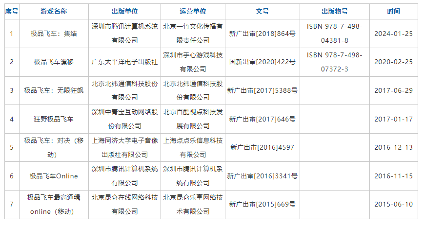 第三,极品飞车系列也的确始终是国内厂商开发赛车游戏绕不过的IP,但也在国内发展缺点火候。茶馆以“极品飞车”为关键词搜索国内游戏版号,可看到腾讯、昆仑万维、中青报都曾试图踏入这一赛道,但成功者寥寥。《极品飞车:集结》无疑是腾讯向多人竞速赛车品类又一次发起挑战,而这次将从卡通风格转向写实画风。