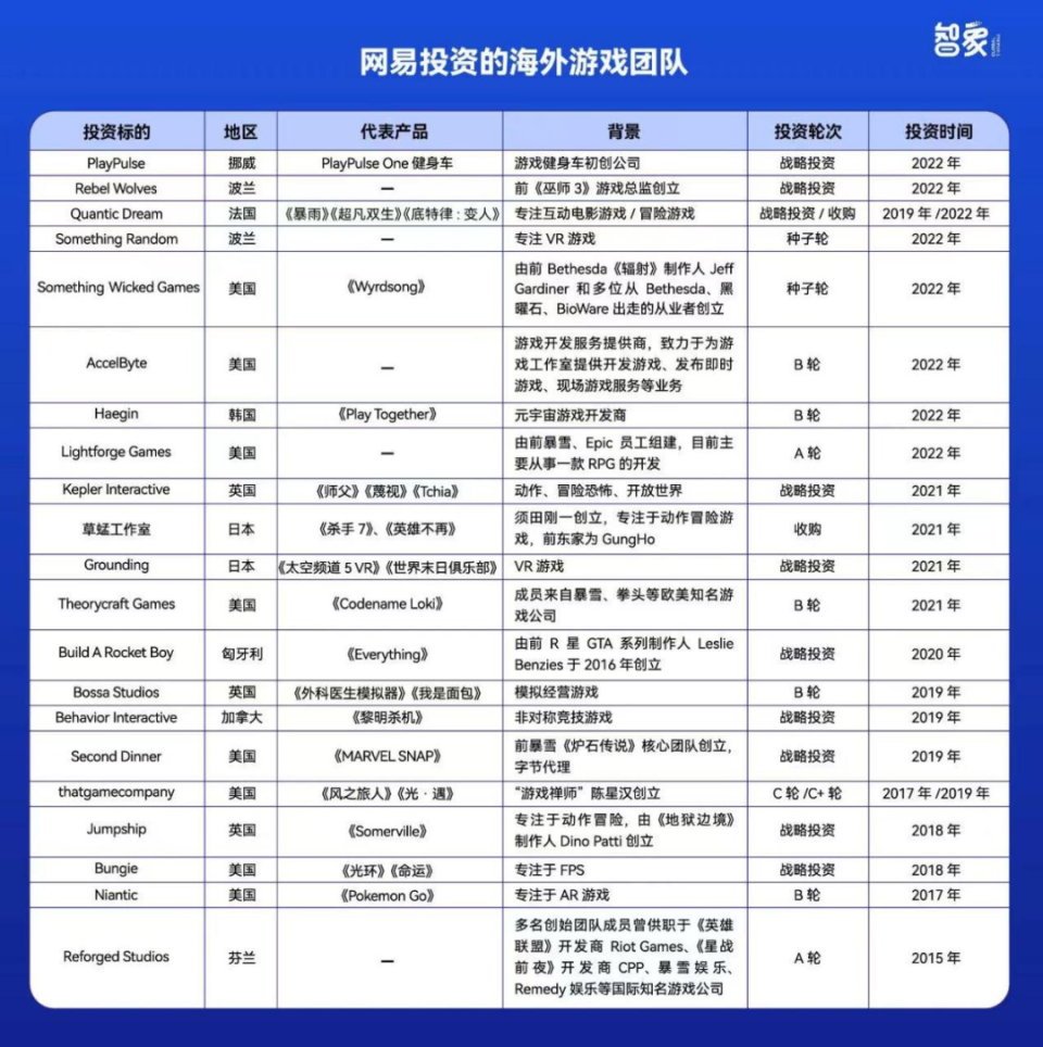也不局限于日本,2022年网易相继宣布在美国成立Jar of Spark工作室,于法国收购了Quantic Dream工作室,同年11月在日本成立了GPTrack50工作室、在波兰收购了Rebel Wolves工作室部分股权。
