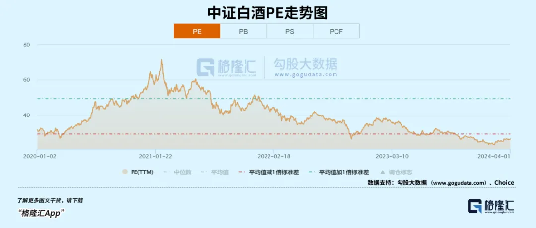 中证白酒从底部上来已经有20%的涨幅,但最新PE为26.46倍,仍然处于近5年相对低位水平。