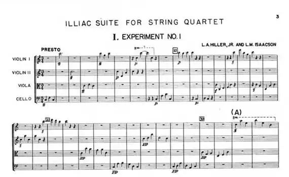 抱着这样的想法,他们用诸如“范围不能超过一个八度、必须从C音开始和结束”之类的程序设置,创作了弦乐四重奏《伊利亚克组曲》,完成了人类历史上第一首完全由计算机“作曲”的音乐作品。