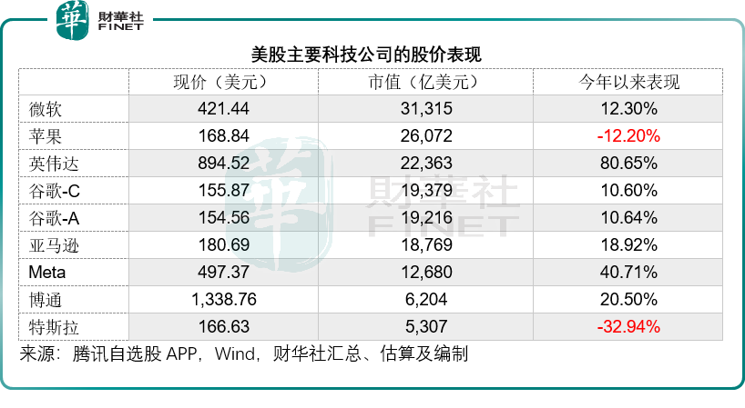 回到美股市场,七大科技企业依然是带动美股表现的火车头,但这七大科技企业中,排名已悄然发生变化,受OpenAI投资的带动,微软(MSFT.US)轻松超越麻烦缠身的苹果(AAPL.US),成为全球市值最高的上市公司,今年以来,其股价累计上涨12.30%。另一方面,市场对iPhone需求可能下降以及反垄断调查的预期,令苹果的股价持续受压,今年以来累计下跌12.20%。