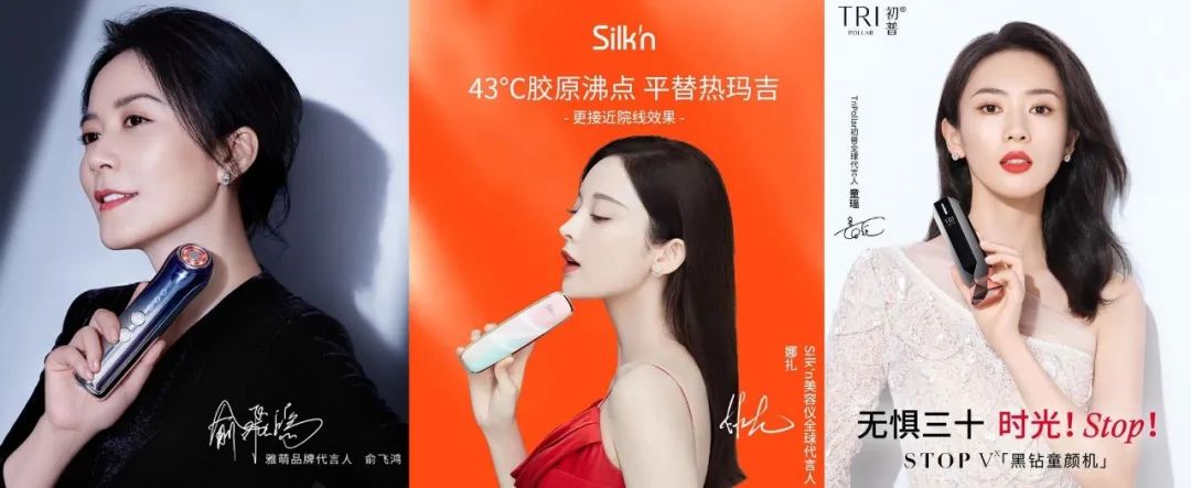 3、营销的收缩、趋稳。一方面,花大价钱搞代言、直播、种草,拉动销售的模式不好跑了;另一方面,品牌要想走得长远,在技术研发的投入必然增长,钱得花在刀刃上了。可以预见的是,今后,美容仪领域的代言数量将有所下降,并在代言人选择上更为谨慎。