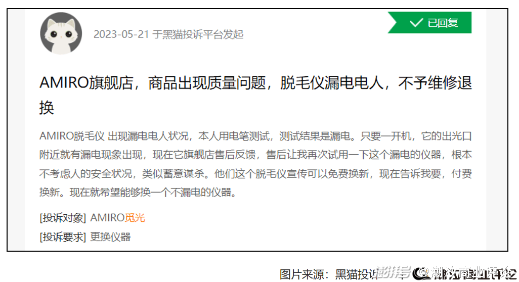高频、卖力、大范围的营销攻势下,各大品牌销售节节高。但与之不大匹配的,是来自用户的口碑。在“黑猫投诉”平台上,与美容仪关联的投诉超3500条,皮肤烫伤、漏电、接触不良、重金属超标、效果夸大,都是常见的投诉项。
