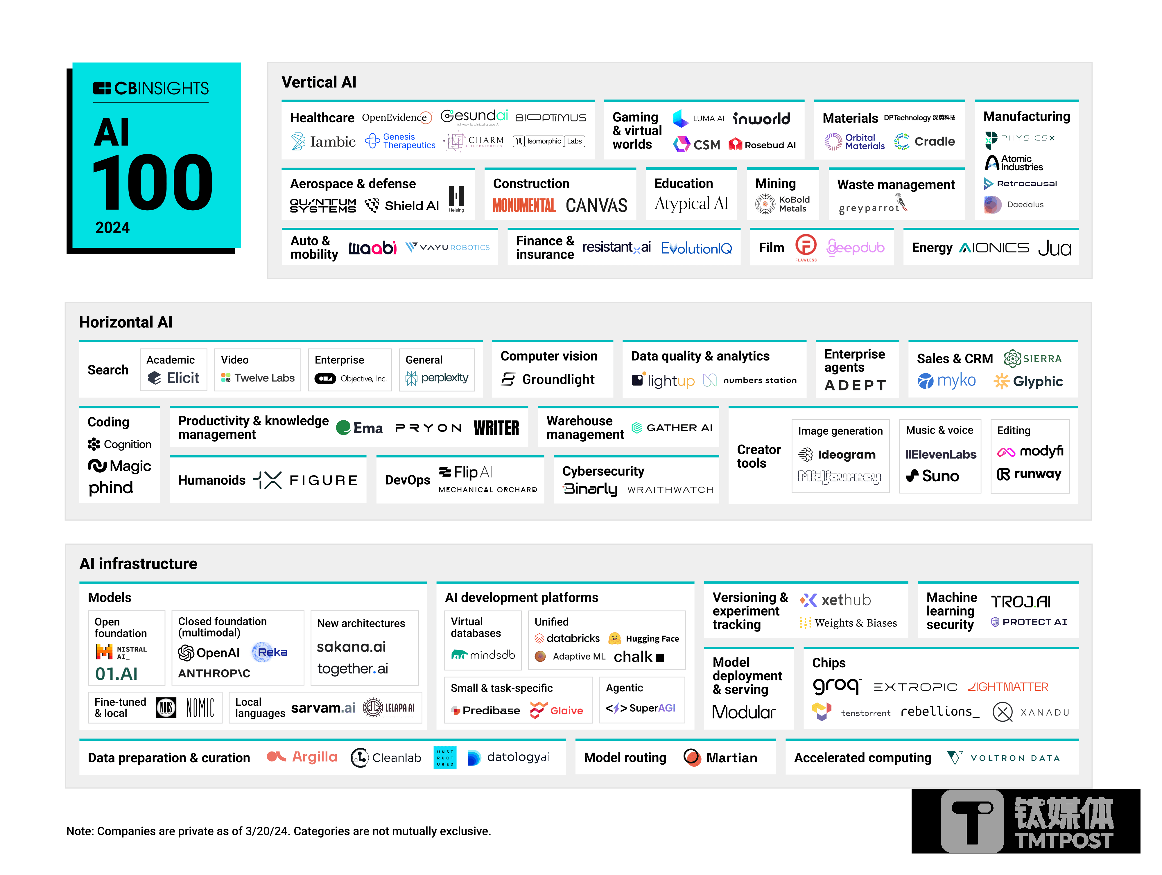 4月2日,研究机构CB Insights公布全新的AI 100榜单,即2024年最有前途的人工智能初创公司。