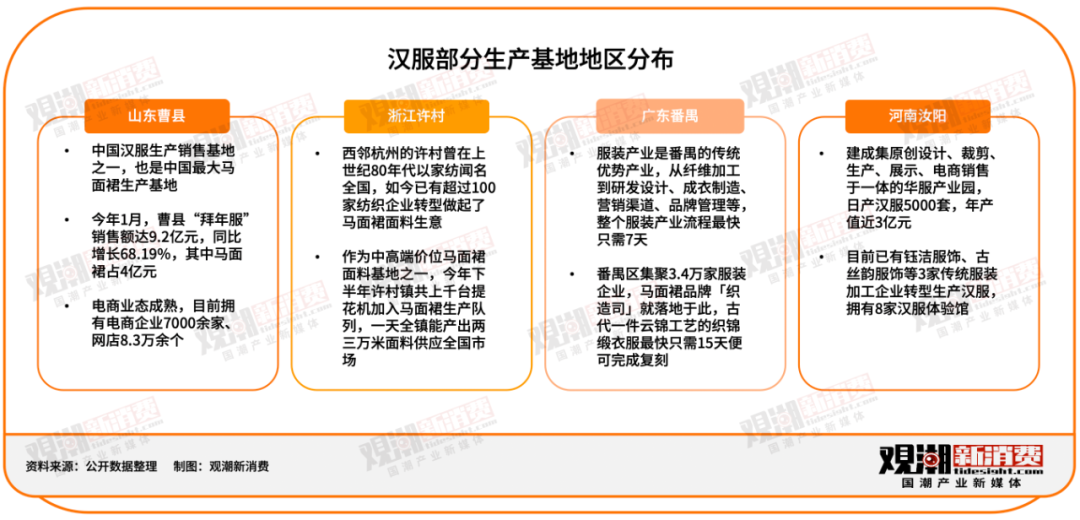 发展较为成熟、出货量较大的品牌通常选择自建供应链,以保证质量和发货速度。汉服老牌“重回汉唐”在四川省彭州市自建裁剪中心、绣花工厂和缝纫工厂,生产周期可以压缩到45天左右,质量把控也能更为精细;织造司则是举家从厦门搬到广东一个服装小镇,从零到一完成了自己的服装工厂搭建。